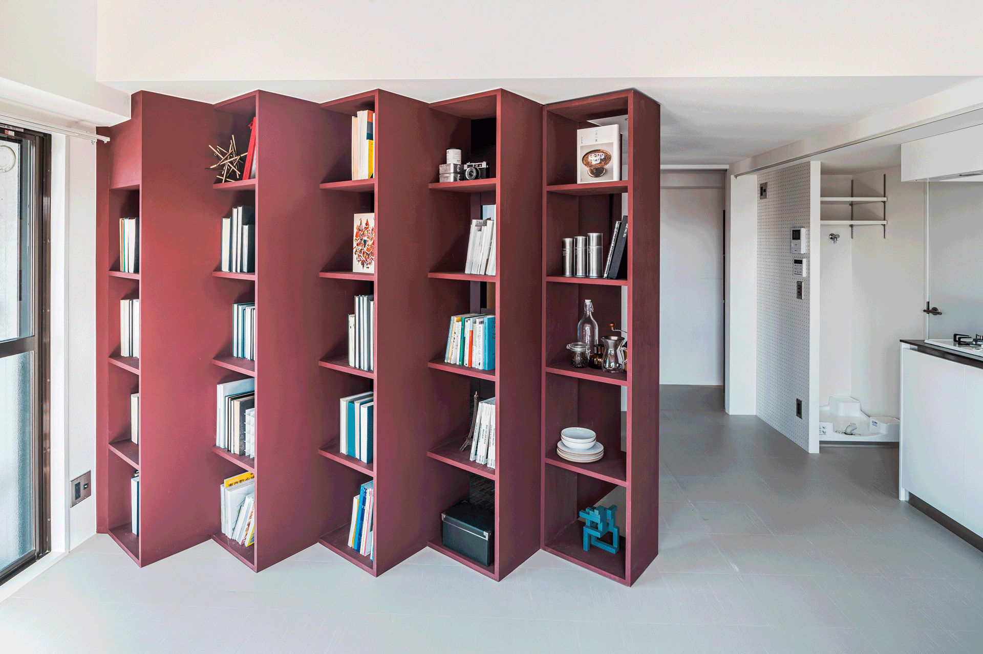 赤門よりカラーピックした深い燕脂色の書斎を持つリノベ済み再販マンションの計画。